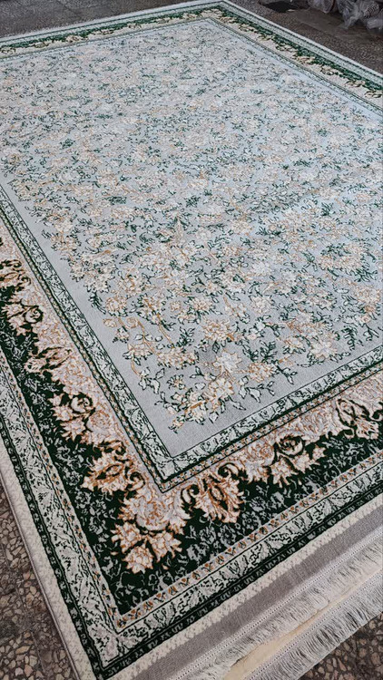 فرش 500 شانه تراکم 1500 رنگ کرم سبز کد 003 (ارسال رایگان)