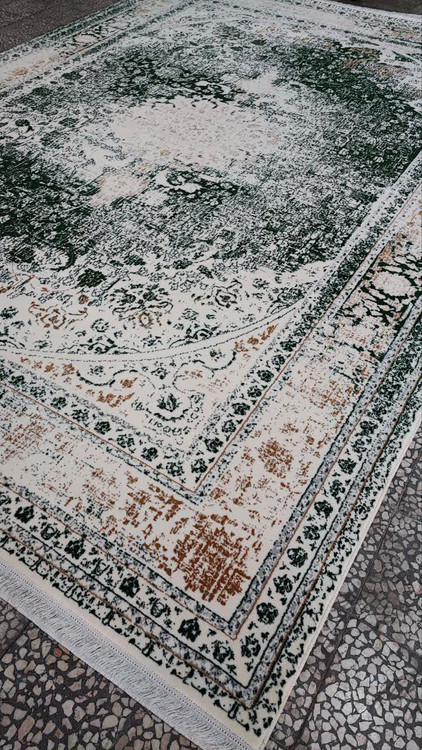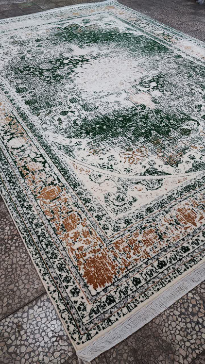 فرش 500 شانه تراکم 1500 رنگ کرم سبز کد 005 (ارسال رایگان)
