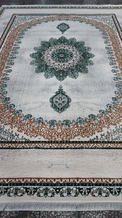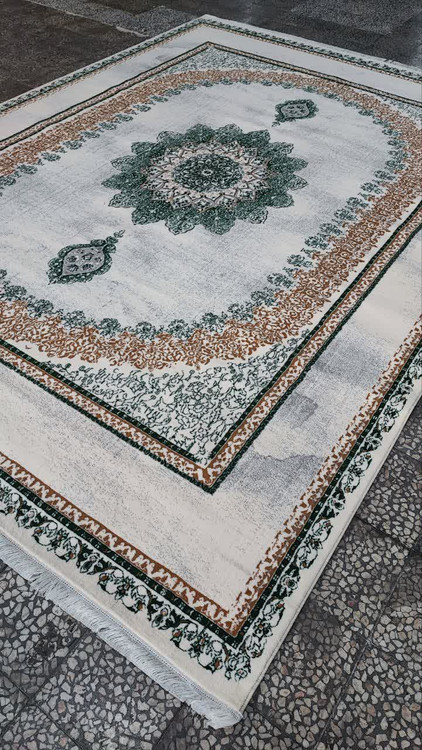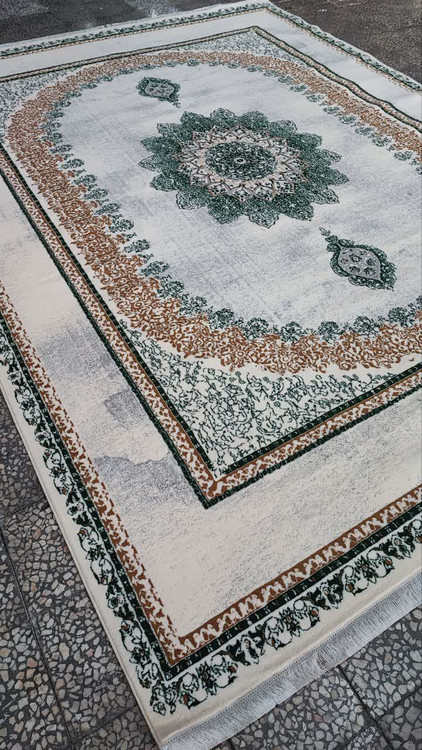 فرش 500 شانه تراکم 1500 رنگ کرم سبز کد 009 (ارسال رایگان)