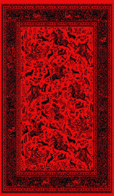 فرش 500 شانه طرح 700 تراکم 1500 رنگ لاکی مدل شکارگاه (ارسال رایگان)