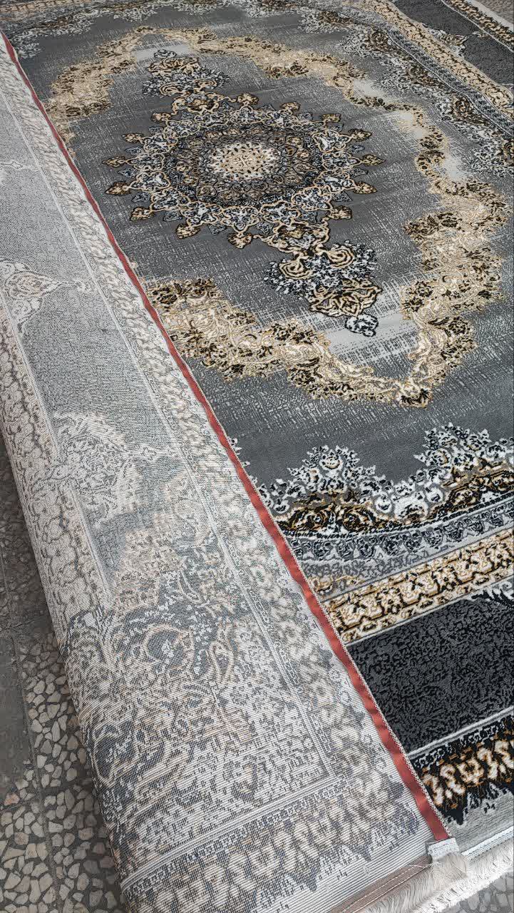 فرش 500 شانه تراکم 1500 مدل کارن نقره ای طلاکوب (ارسال رایگان)