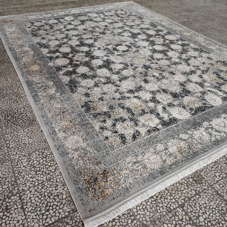 رنگ نقره ای خنثی و شیک این فرش، آن را با هر سبک دکوراسیونی—از کلاسیک تا مدرن—هماهنگ میسازد. این رنگ باعث بزرگتر نشان دادن فضای اتاق نیز میشود.