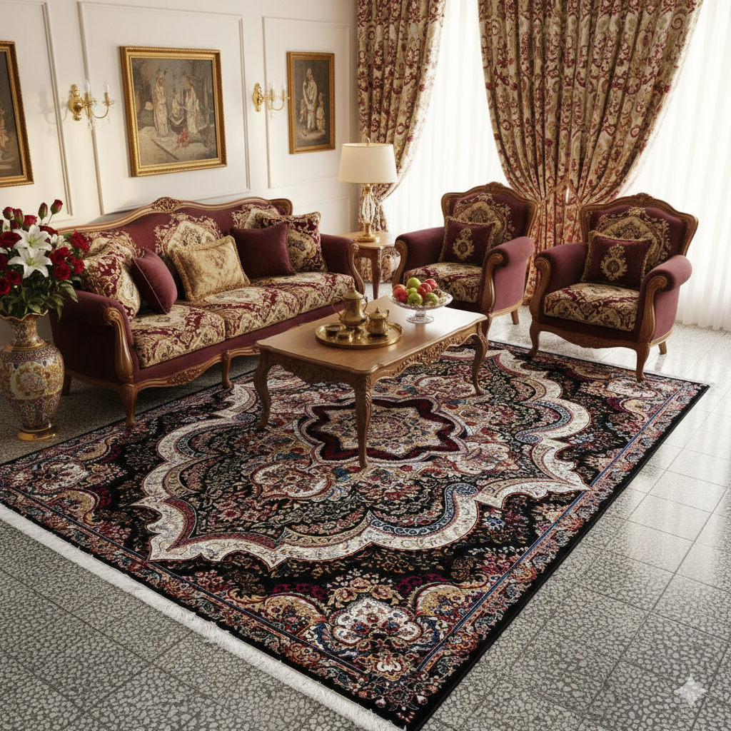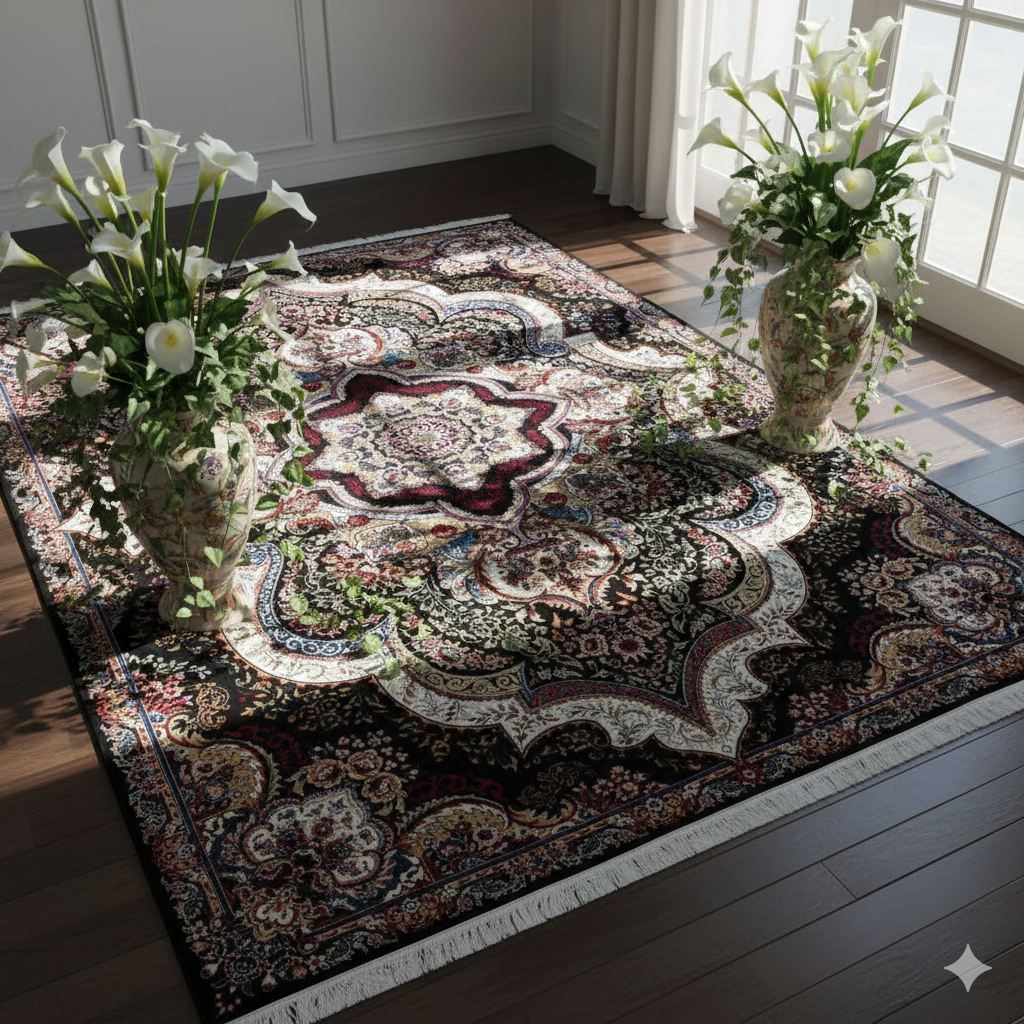 فرش شهیاد مشکی 500 شانه طرح 700 تراکم 1500(+فیلم کیفیت فرش)