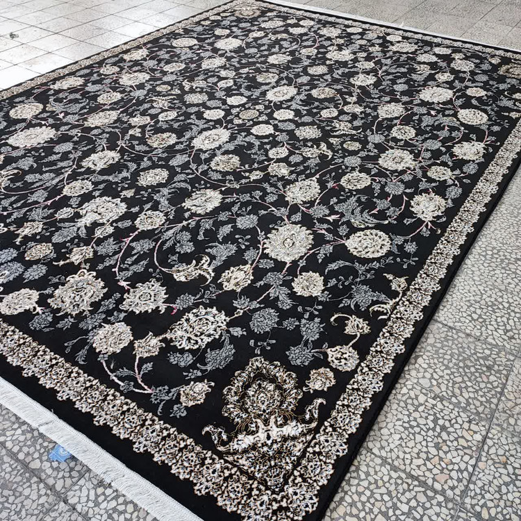 فرش 500 شانه تراکم 1500 طرح هستی مشکی(+فیلم کیفیت فرش)