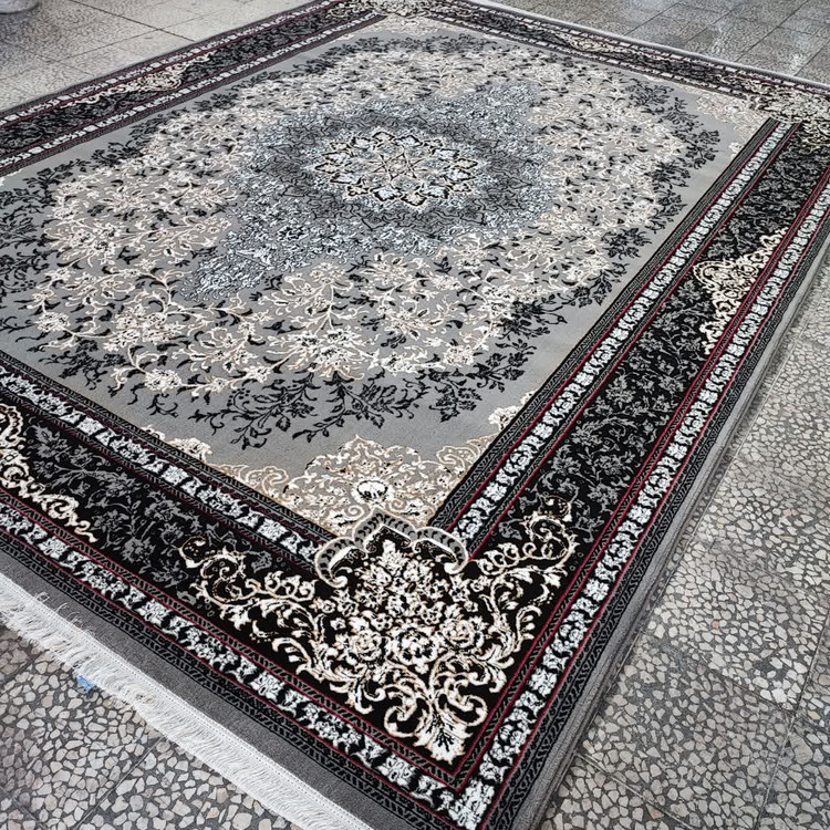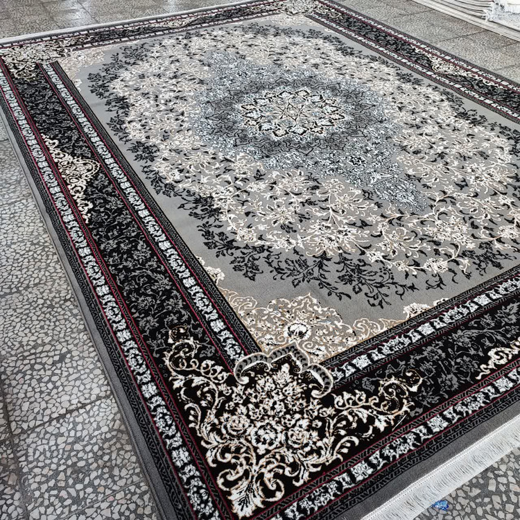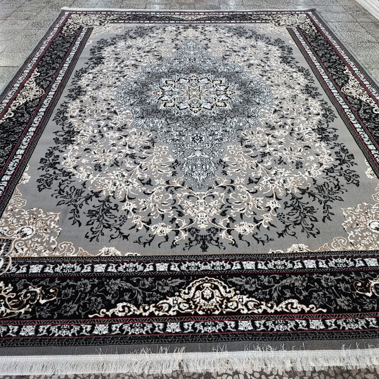فرش 500 شانه طرح 700 تراکم 1500 طرح تندیس طوسی حاشیه مشکی(+فیلم کیفیت فرش)