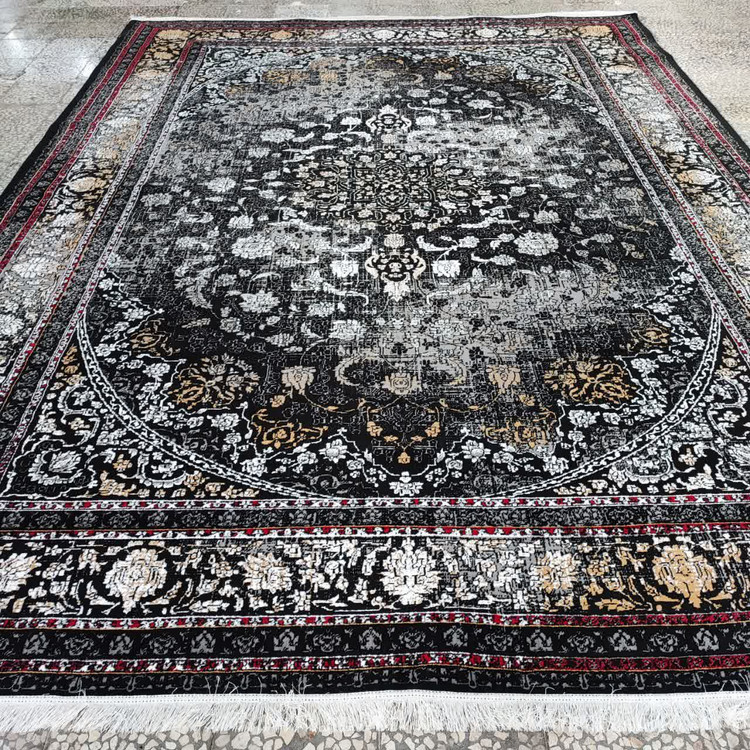 فرش 500 شانه تراکم 1500 طرح ثروت مشکی(+فیلم کیفیت فرش)
